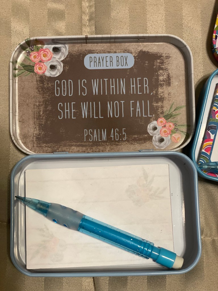 Oh! I’ll have to check out Dollar Tree. Coincidentally, I saw prayer boxes in an online catalog earlier today and was thinking what a great gift they would be for the folks in our bible study group.