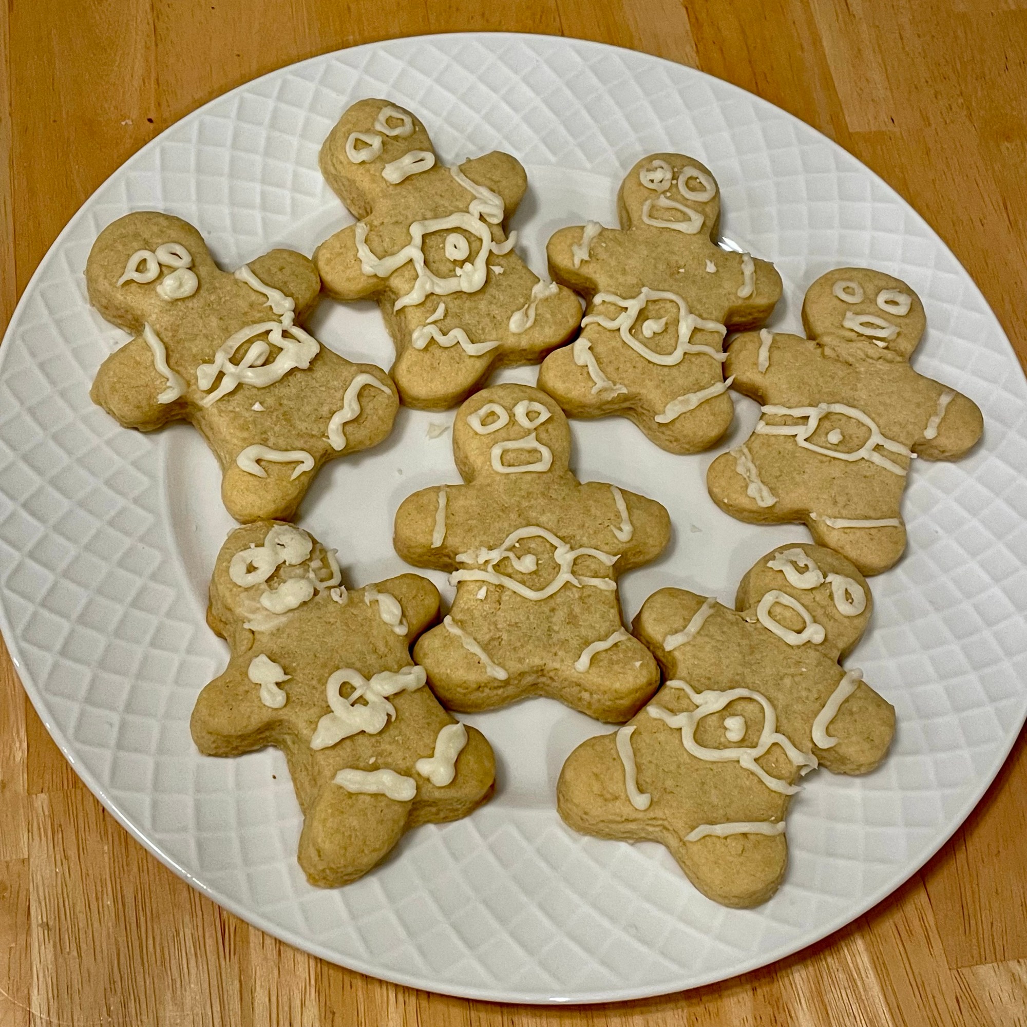 We made gingerbread men at Christmas and my kiddos are a little bit “Star Wars: A New Hope” crazy. So the gingerbread men reminded them of C-3PO and they have been wanting to make C-3PO cookies ever since. They finally got to make them today!