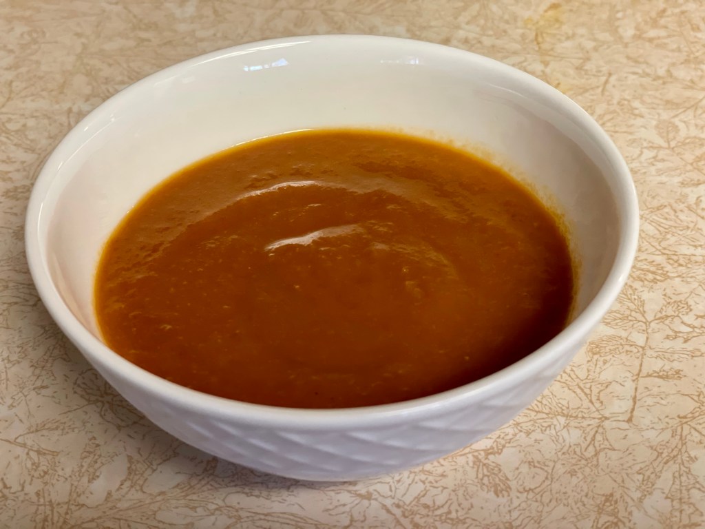 Sauté one chopped onion, one chopped carrot and 2 stalks chopped celery in EVOO or butter until they have brown edges. Add a bit of salt to veggies while they cook. Add one 28oz can of petite diced tomatoes and cook for 10-15 min. Add 4 cups of stock, bring to boil, turn down to simmer 20-30 min. Add salt & pepper and other spices to taste. We like 1 tsp of dried basil and a dash of white pepper. Purée with an immersion blender. Add 1/2 cup of pre-cooked alphabet pasta. My daughter (age 10) likes to add a dollop of heavy cream to hers.