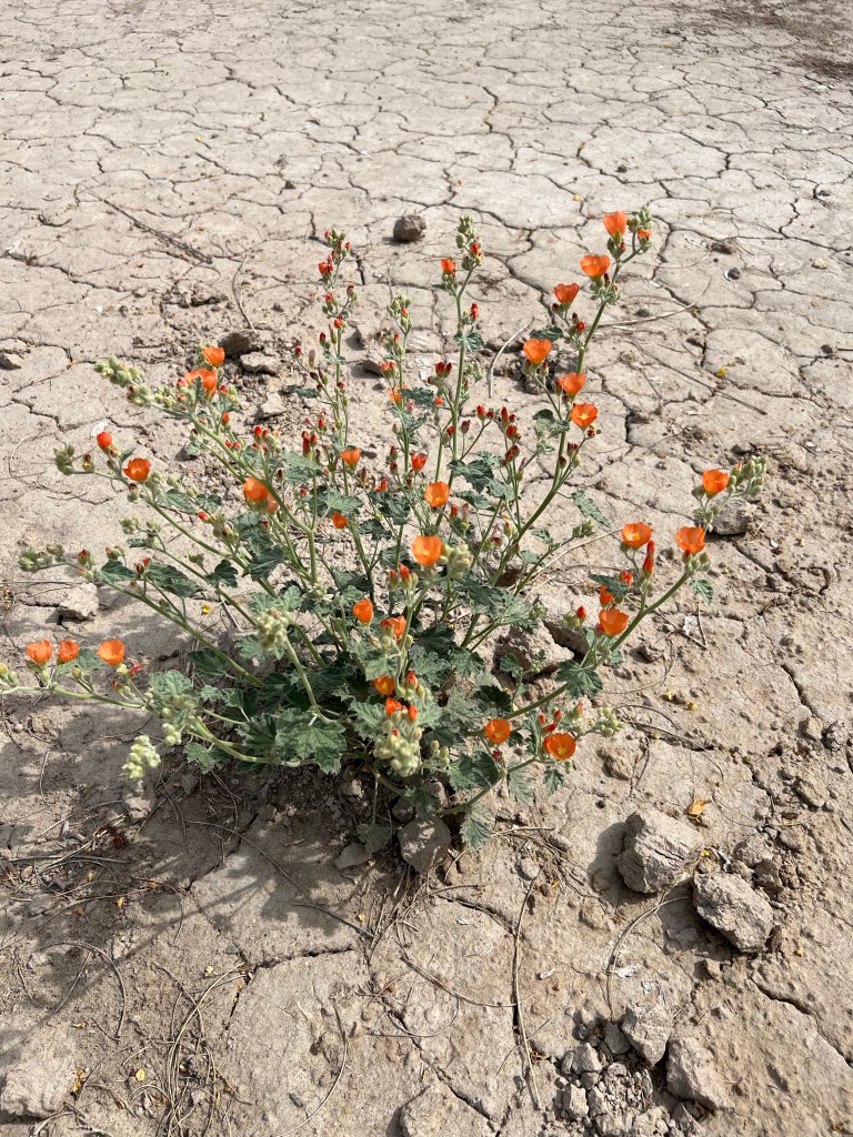 I agree! I love the juxtaposition of the waxy red-orange flower with the matte dry cracked earth.