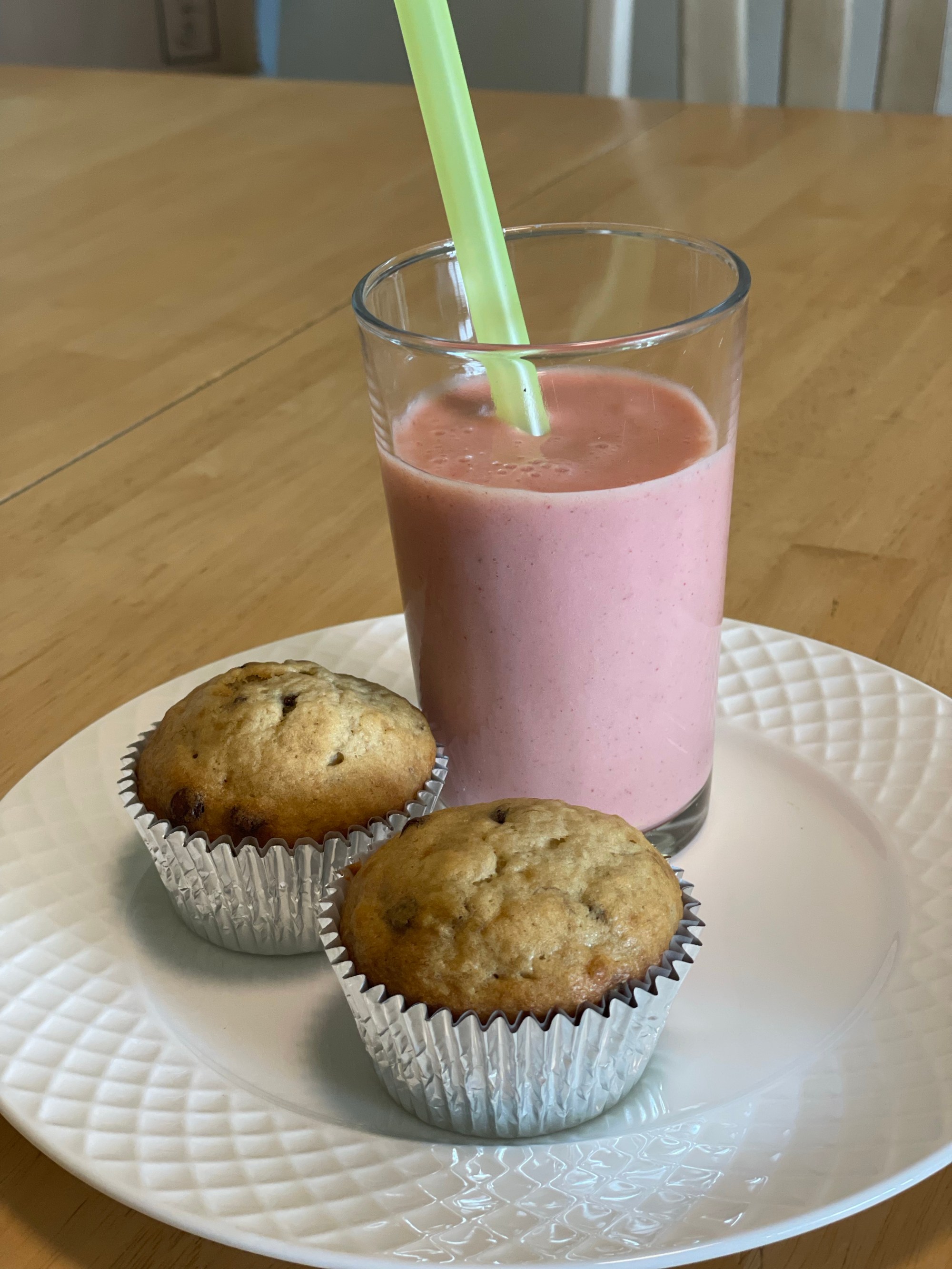 Make Chocolate chip Banana 🍌 Bread and strawberry smoothies for breakfast