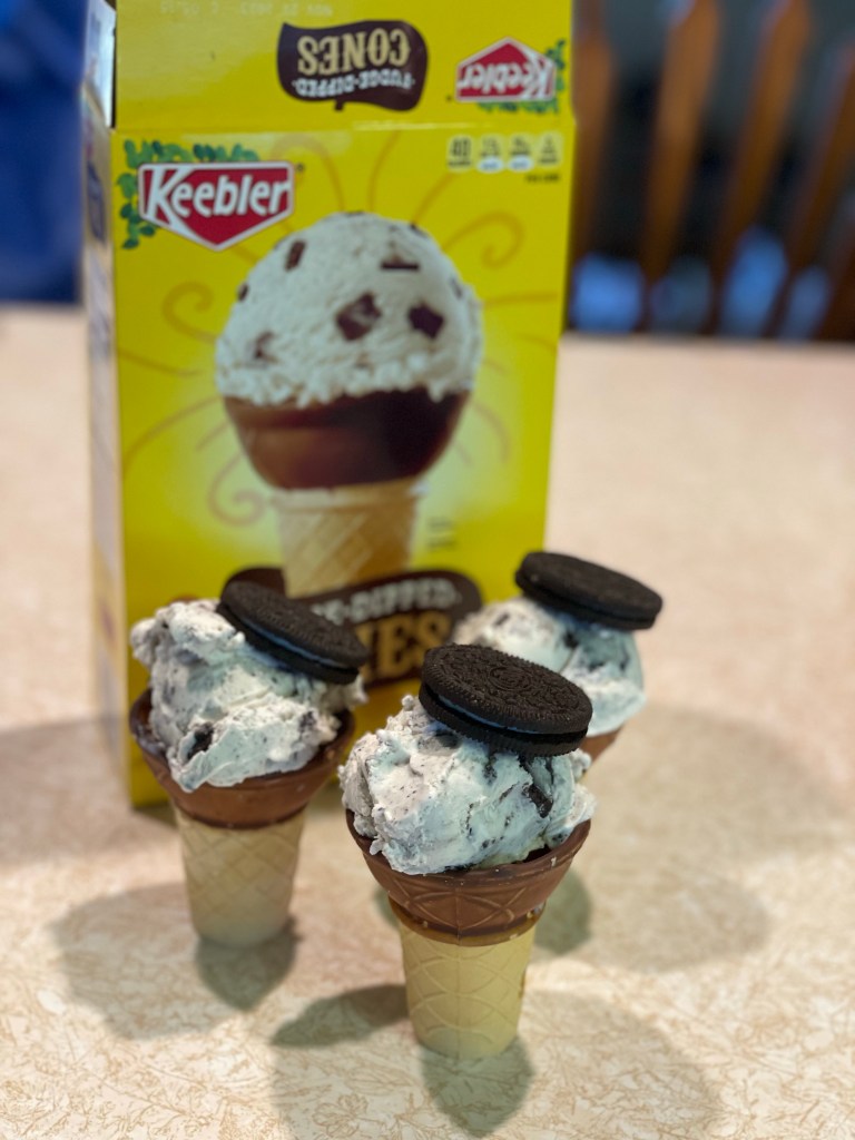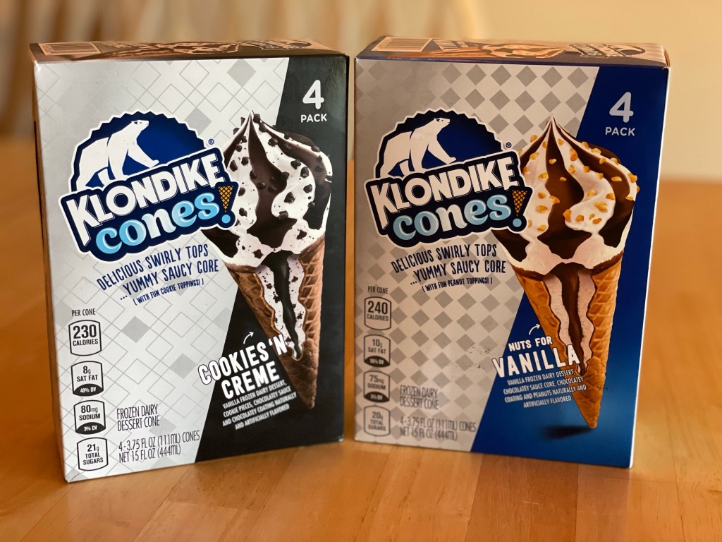 Klondike cones (choose your favorite flavor out of two choices): cookies n cream or nuts for vanilla