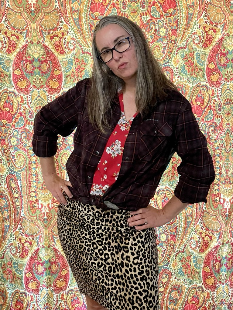 My interpretation of this spirit week prompt was power clashing. Hope you enjoy these wild clothing combinations. We had all of these costume pieces and the paisley backdrop on hand. No need to purchase a thing.