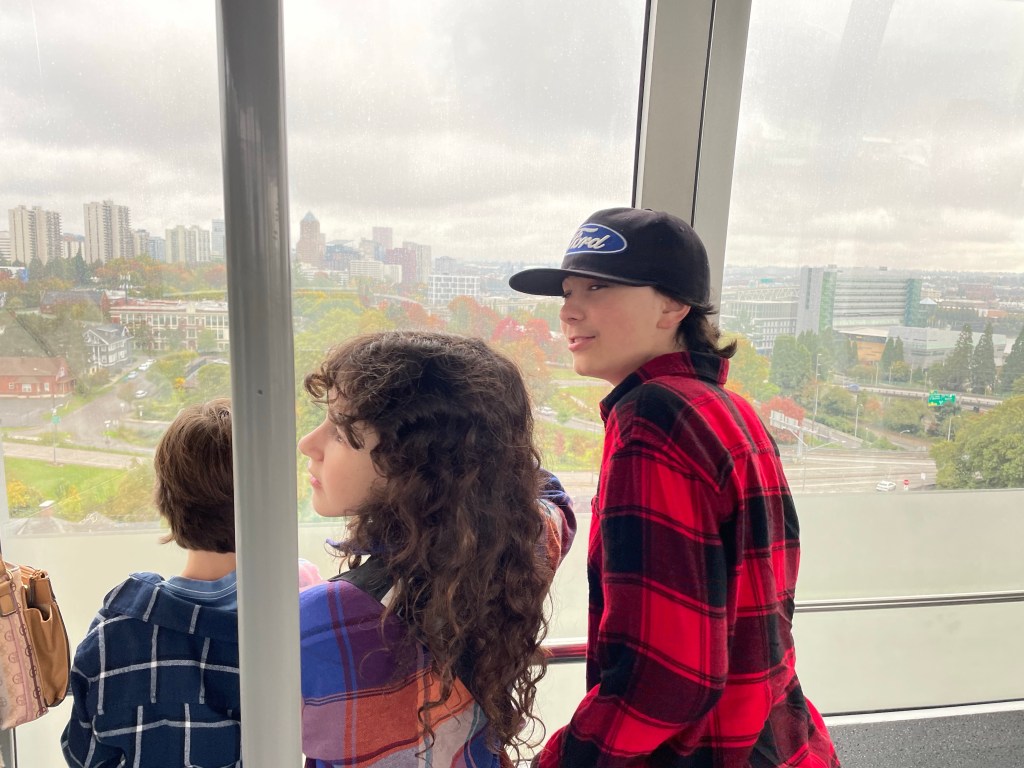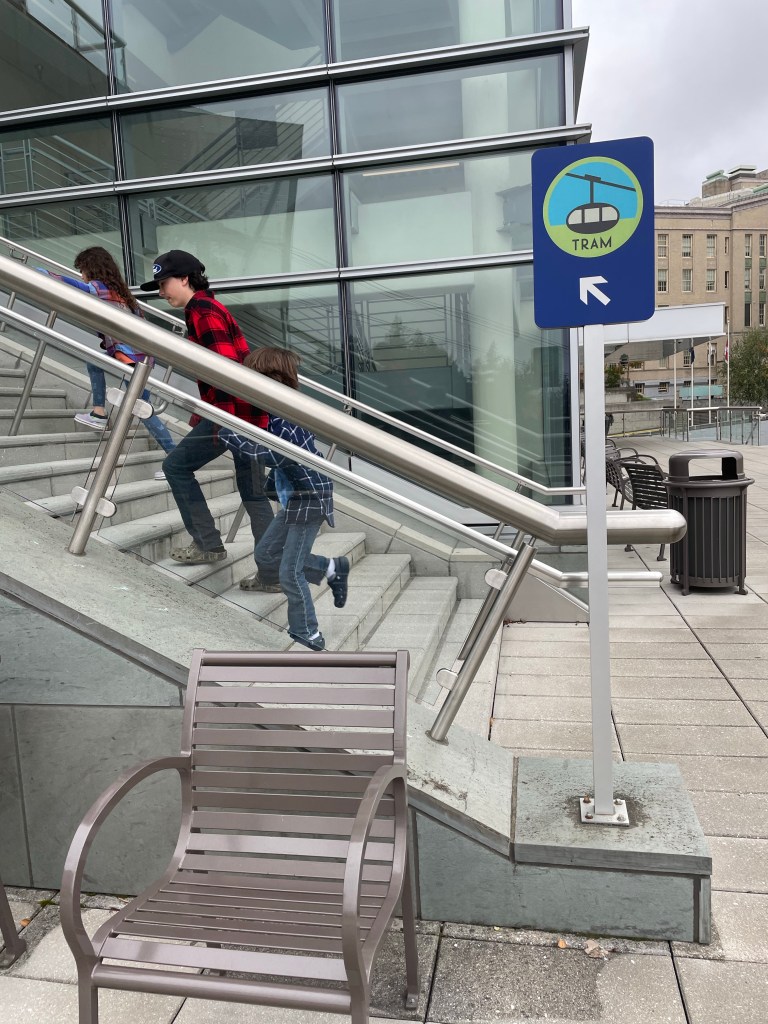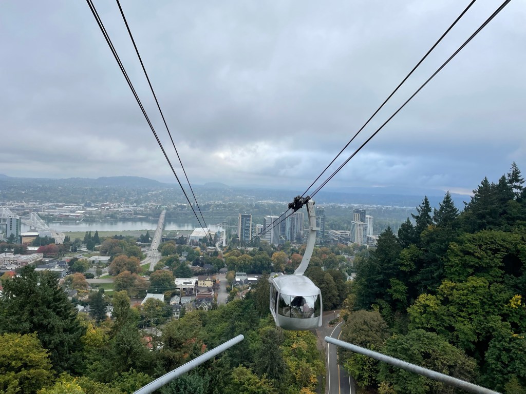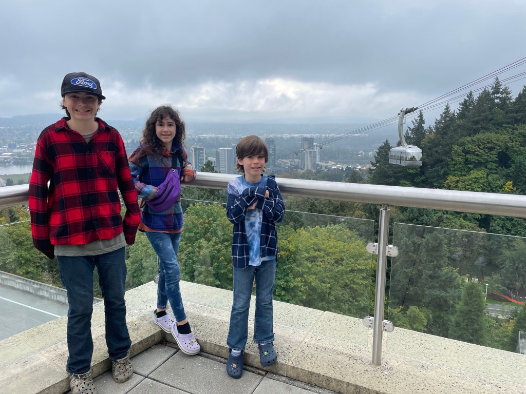 After visiting the Beverly Cleary Statue Garden (“unique to the area” & “art/culture” on our itinerary), we took an Uber to the Portland Aerial Tram that we’d seen while driving around Portland. The kiddos loved the experience. We got a really fun bird’s eye view of Portland. This one is “unique to the area” on our itinerary.