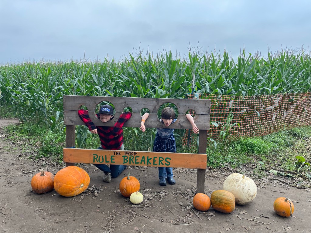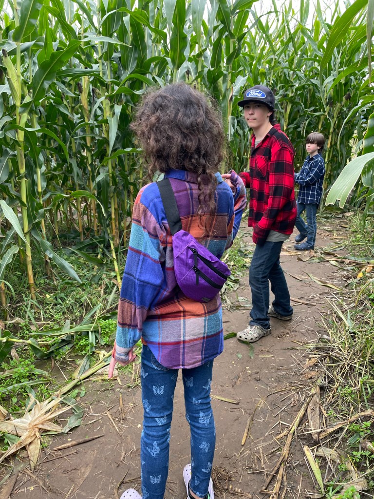The children tried pumpkin bowling but I failed to get a picture. 🤦🏻♀️ We did the kid corn maze and the adult corn maze and let the children lead the way in both.