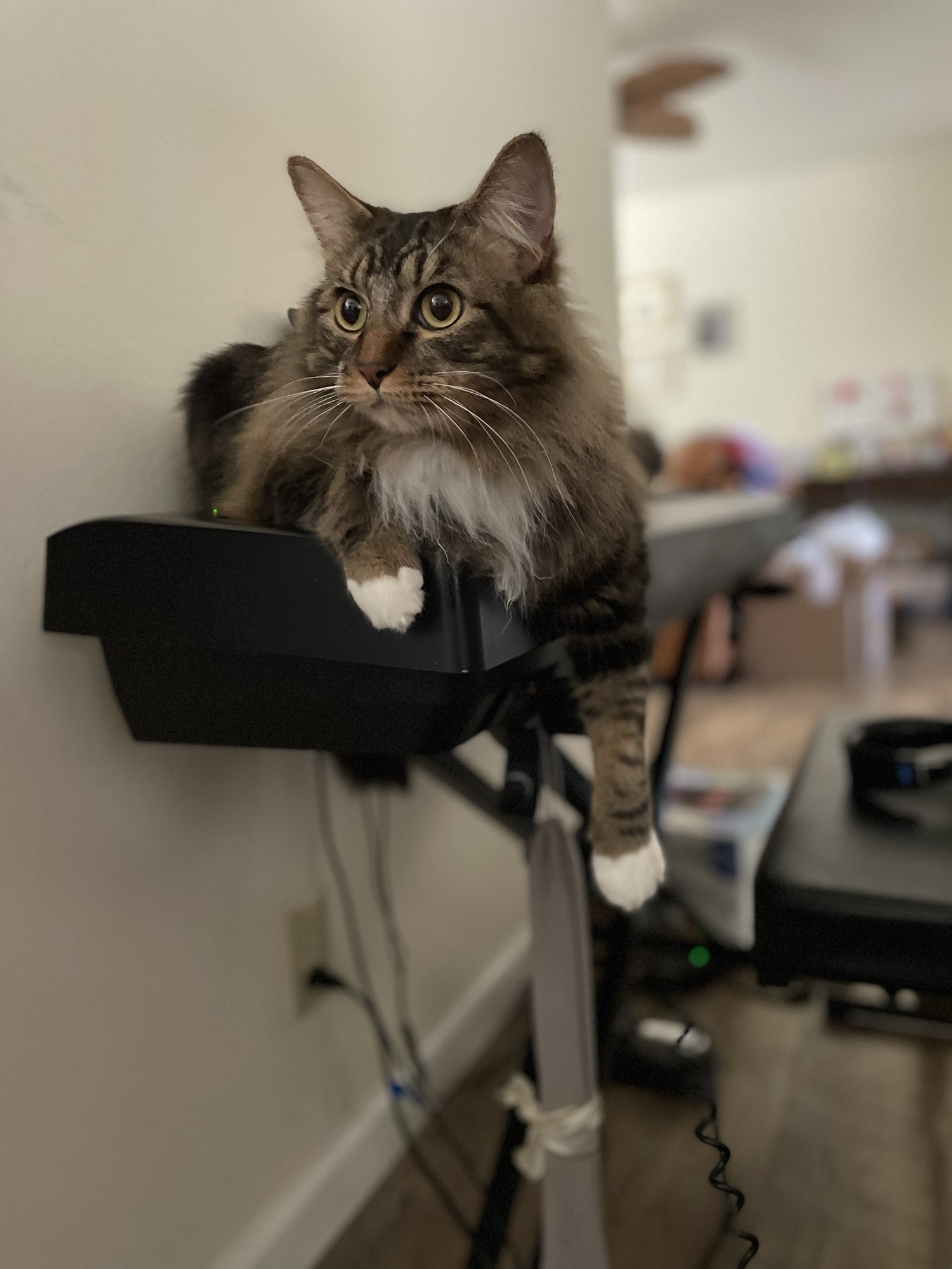 He was being rambunctious. He usually doesn’t get up on the keyboard. His eyes were wild with excitement!