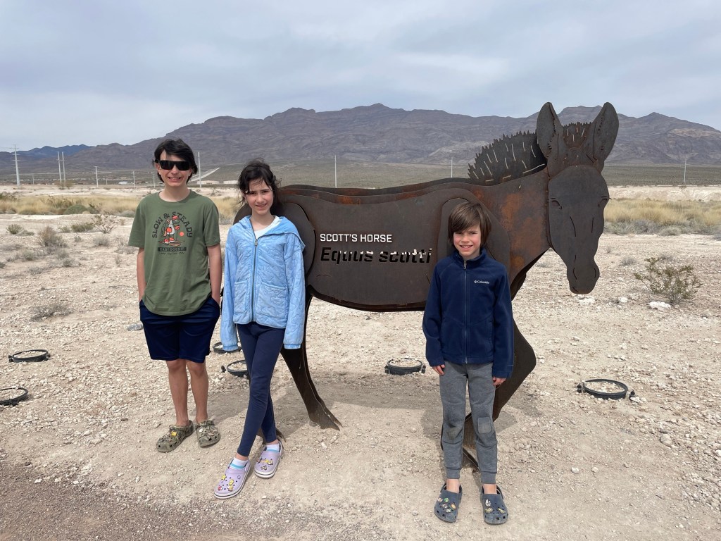 Ice Age Fossils State Park is only open on the weekends, so our timing was perfect. We only stayed for an hour and did the mini outdoor loop of statues and looked around inside the museum for a bit. We used a Nevada State Park Pass that we checked out from the library to get in free.