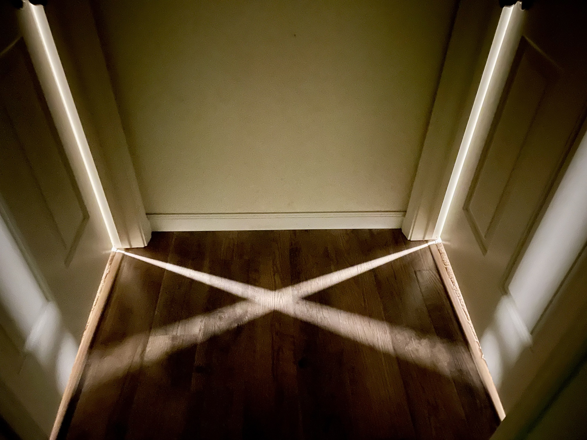I was walking down the hall to tuck the kiddos into bed, and this is what the lights on in the 2 bedrooms at the end of the dark hallway with the doors slightly ajar look like.
