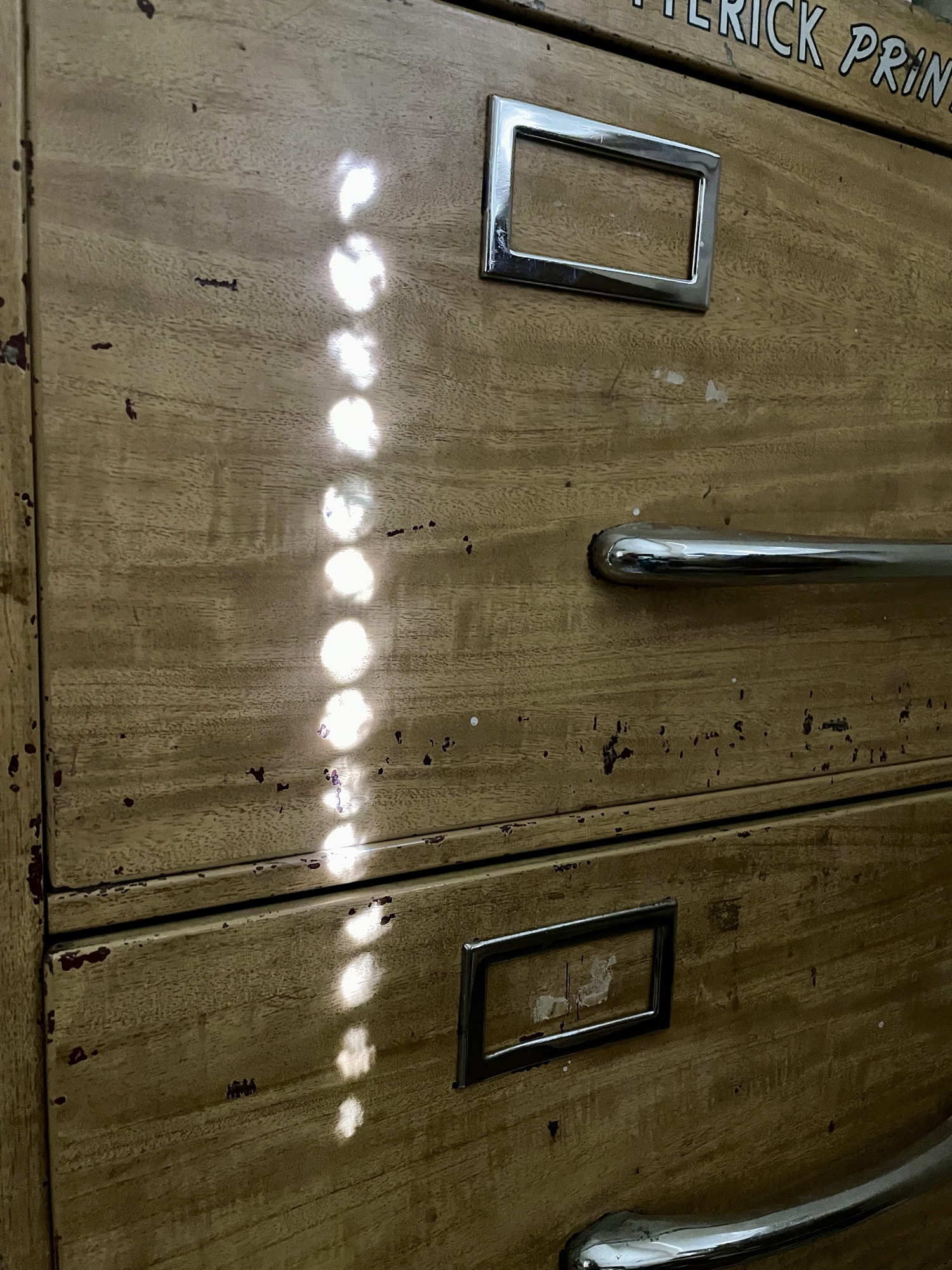 I like the light circles, but the thought of an old metal Butterick Pattern cabinet is most endearing to me.