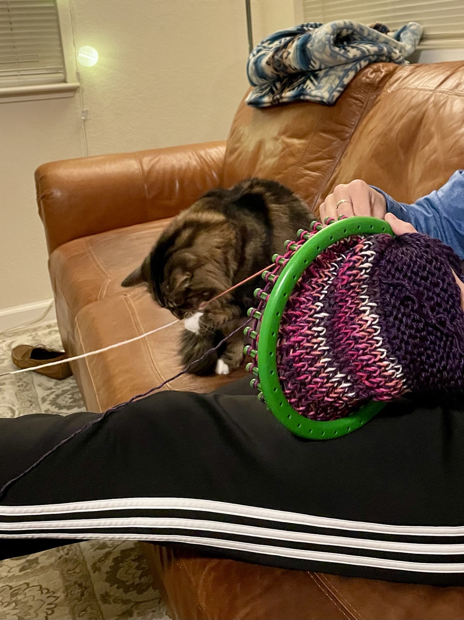 The cats belong to my children! 🤣They have never really bothered my yarn before. But last night, Luke couldn’t resist it. It was a funny picture that encapsulates my relationship with the cats: tolerance and mild annoyance by all involved parties.