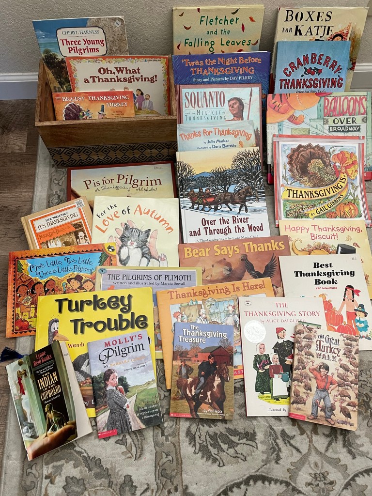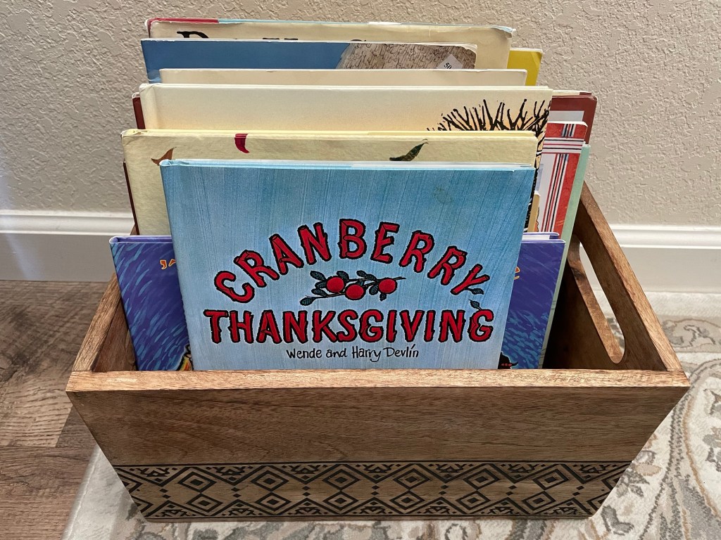 a bin full of seasonal picture books