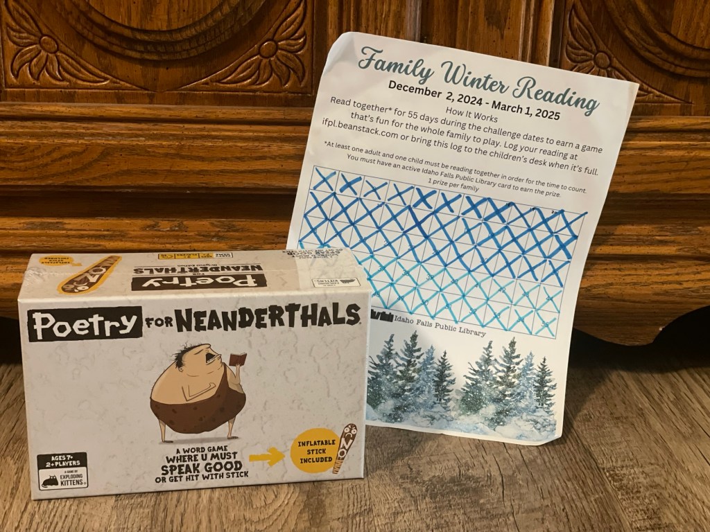 Family Winter Reading: read together 55 days between 12/2/24 – 3/1/25 ✅