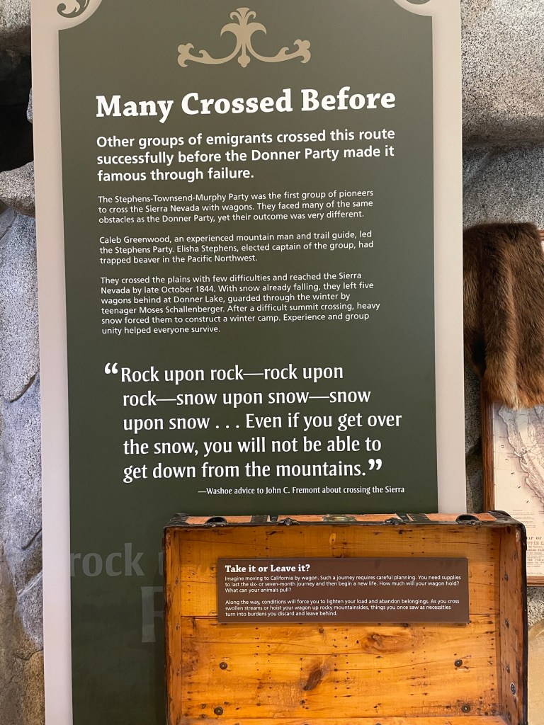 The Donner Party is a tragic piece of California history. The museum at the visitor’s center was informative and interesting. Here’s a link for more information about the Donner Party.