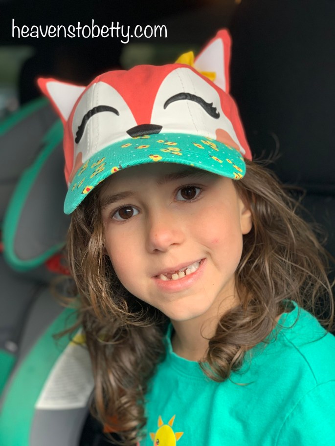 K’s been needing a new hat for awhile now. We got her a white one way back when we were staying at Sam’s Family Spa and it’s a total mess. I would never recommend buying a white hat. I would definitely recommend buying a sleeping fox hat! So cute!