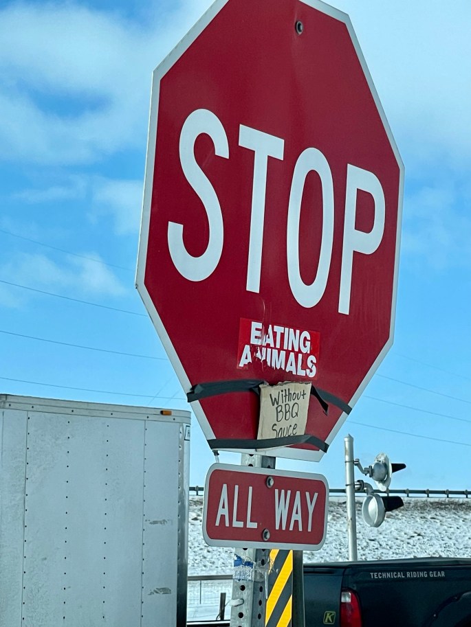 Stop. Stop Eating Animals. Stop Eating Animals Without BBQ Sauce.
