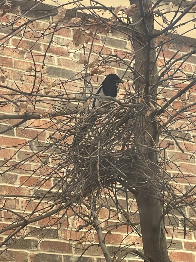 We were blessed to observe 2 magpies building their nest of sticks for science class this week.