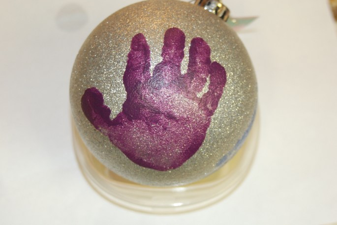 I told my husband that this would be the last year that I ask him to help me make our giant Dollar Tree Christmas ornament balls for all of our grand-folk. That's 3 total ornaments + 3 hand prints per ornament = 9 opportunities for disaster! I made the first ornament for Snickerdoodle's first Christmas … Continue reading Kid’s Hand Print Ornament