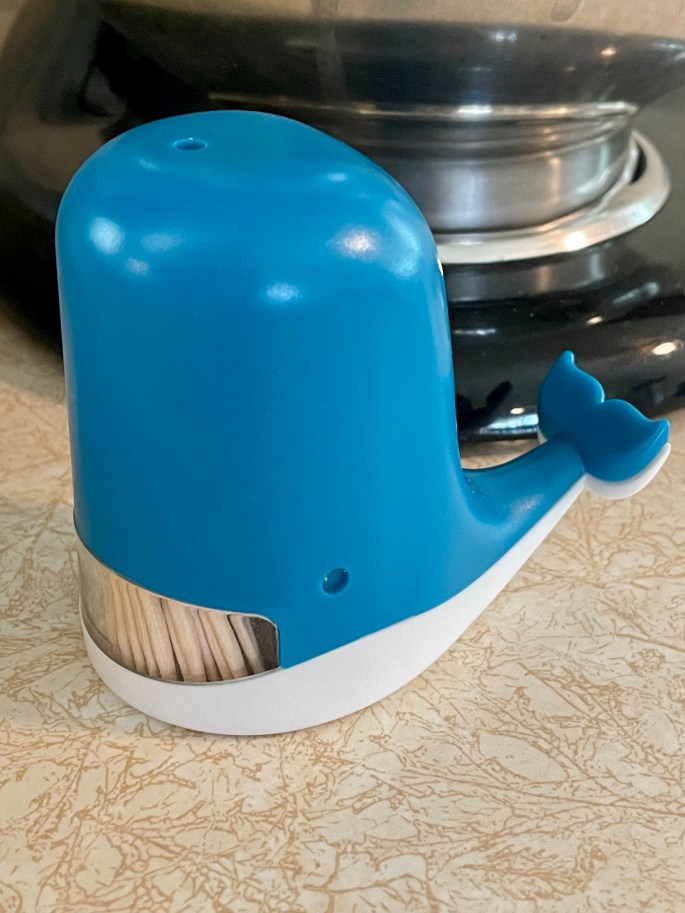 As part of my fun kitchen gadget collection. Here’s a toothpick holder with a clear window so the wooden picks look like baleen. I found it on Amazon Jonah Toothpick Holder by Peleg Design