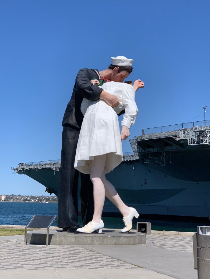 April 7 & 10, 2019 This post is a bit out of order since we went to the USS Midway on Monday 4/8/19. I needed a photo (bottom of post) and we didn't get it until yesterday 4/10/19. A big kudos to all the docents at the USS Midway. Everyone we talked with was very … Continue reading Sailor Kiss – San Diego, California